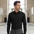 Valuetainment Men's Black Tencel Long Sleeve Button Down Shirt (Classic Fit)