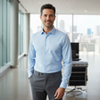 Valuetainment Men's Sky Blue Tencel Long Sleeve Button Down Shirt (Classic Fit)