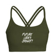 Women's Future Looks Bright Army Green Strappy Sports Bra - XS is backordered and will ship as soon as it is back in stock.