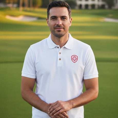 $74.99 USDUnit price /UnavailableFuture Looks Bright Lion Shield Premium White and Gold Polo Shirt (Classic Fit)