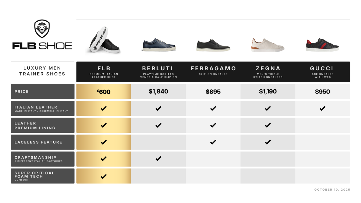 Engineered with next-generation Super Critical Foam technology for unmatched cushioning and support, and wrapped in premium Italian materials, the FLB I sets a new standard in casual luxury.